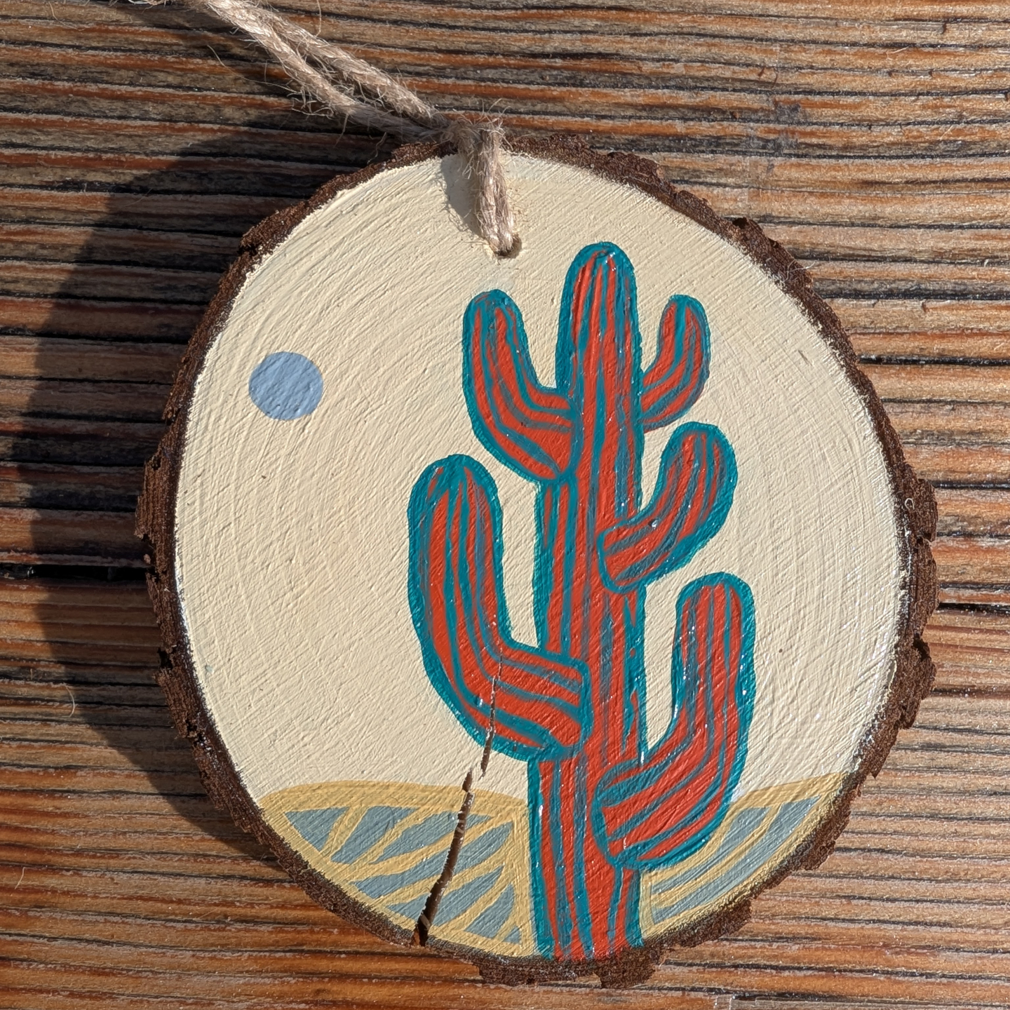 Slices are natural wood and vary in size, shape, texture, and color. Also, just as in nature, some of the wood has cracked and small bits of bark may come loose over time. This adds to the beautiful rustic individuality of each tiny painting.