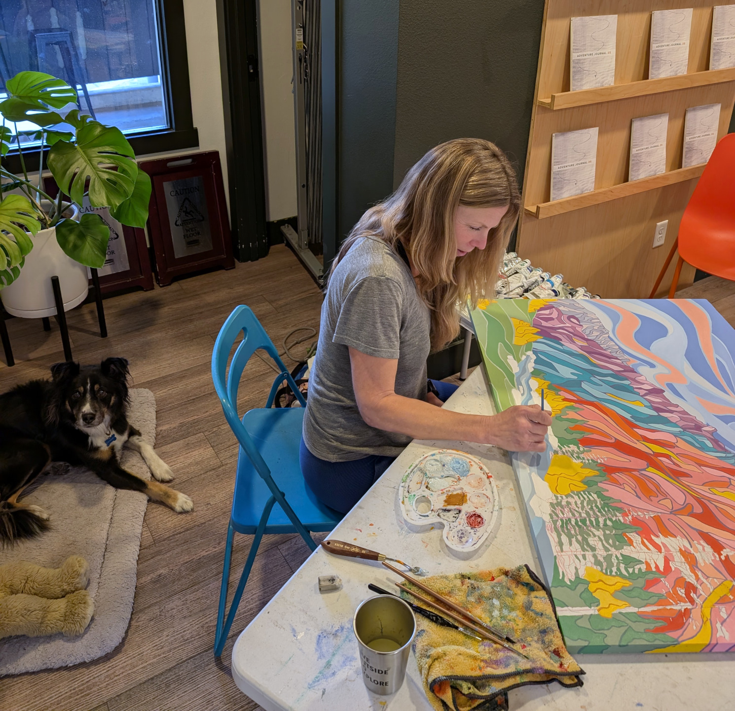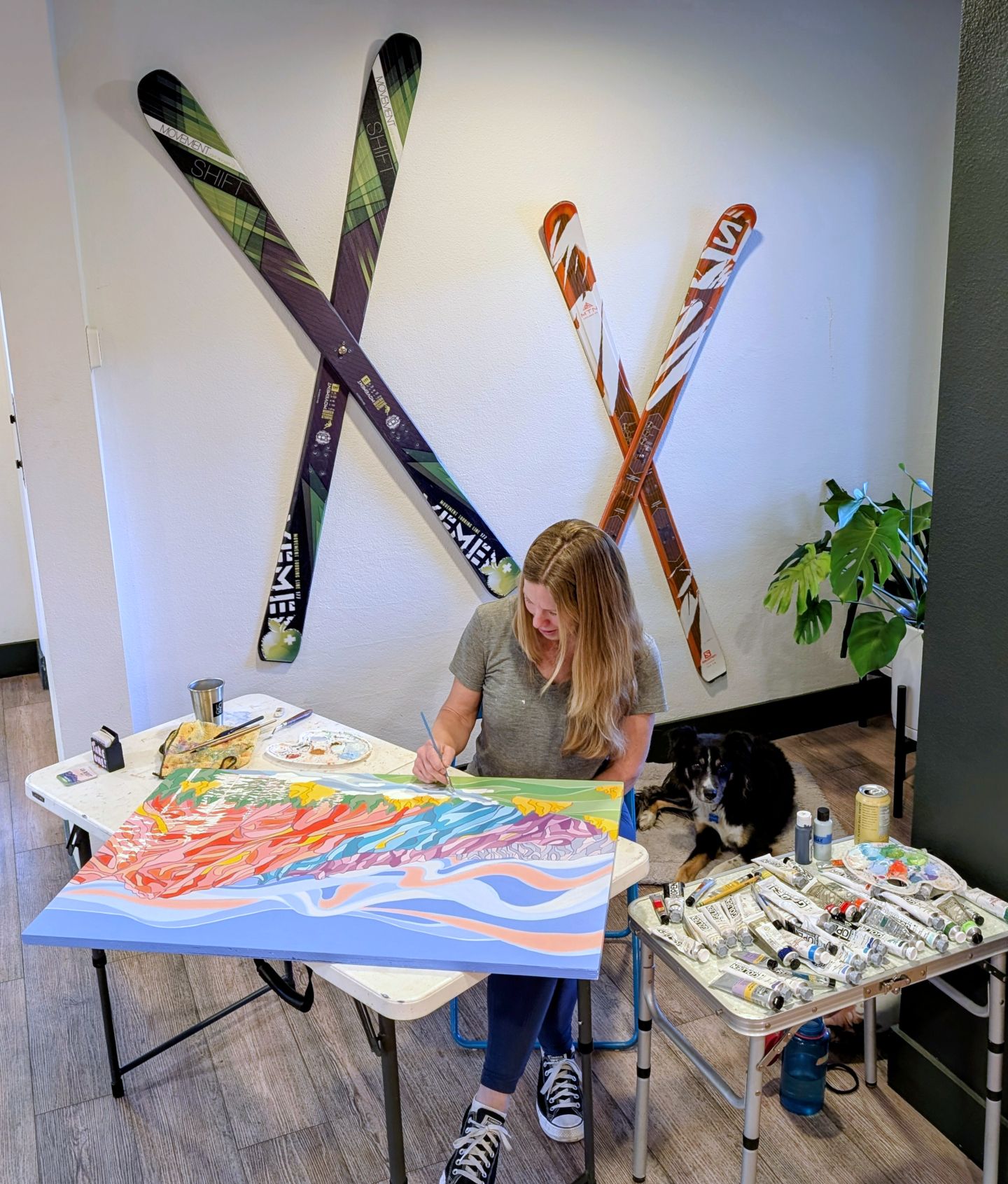 An exciting surprise was being chosen as the Artist in Residence at the LOGE Hotel in Leavenworth, WA, which was a fantastic three-week span of creating large paintings, selling ornaments in a local shop, and making new friends. After that, I bee-lined it to Breckenridge, CO, for our annual Thanksgiving dog-sitting job, then headed home to Oklahoma, where we stayed until early February.