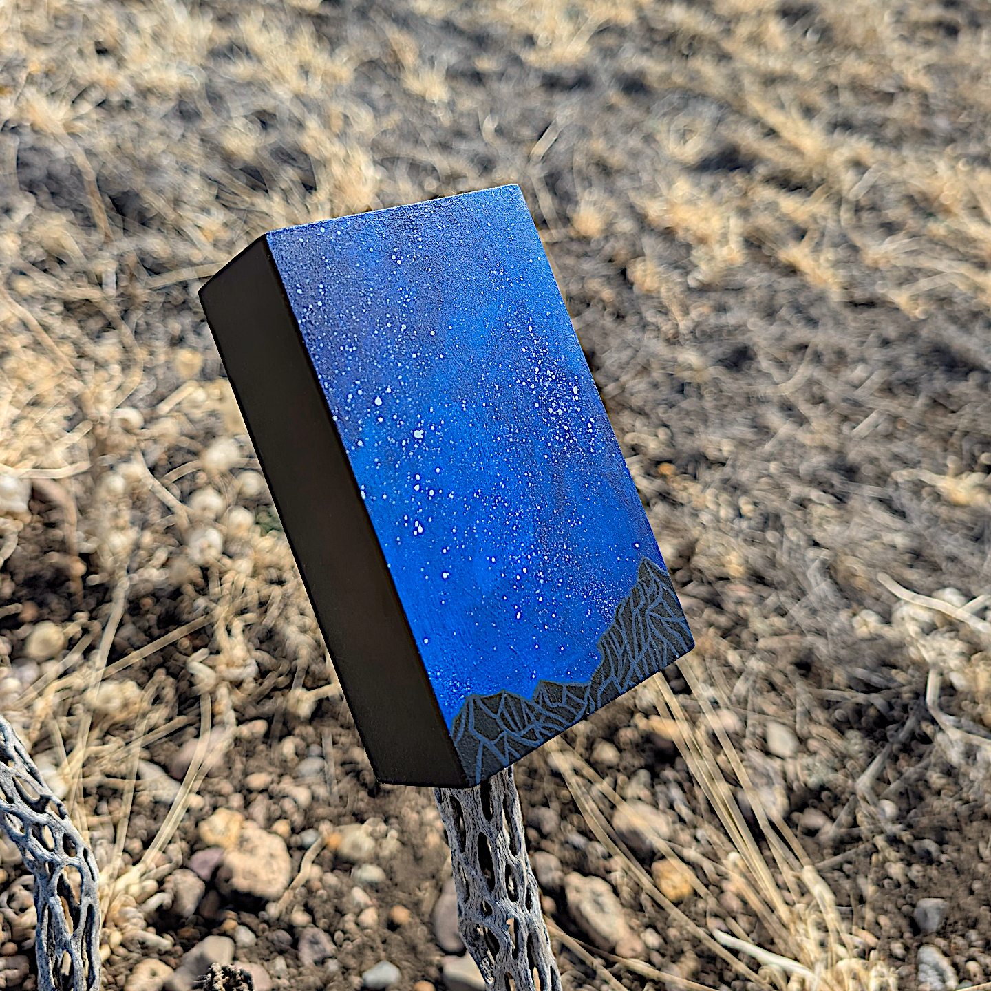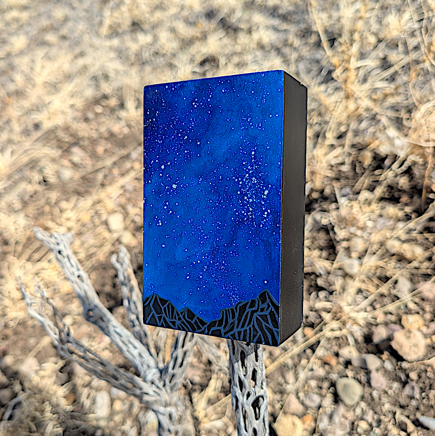 Bring the wonder and awe of the expansive night sky into your home with this original painting. Choose a star, make a wish, and let this serene scene add a bit of magic to your space. Lightweight, easy to hang or sit on a shelf.