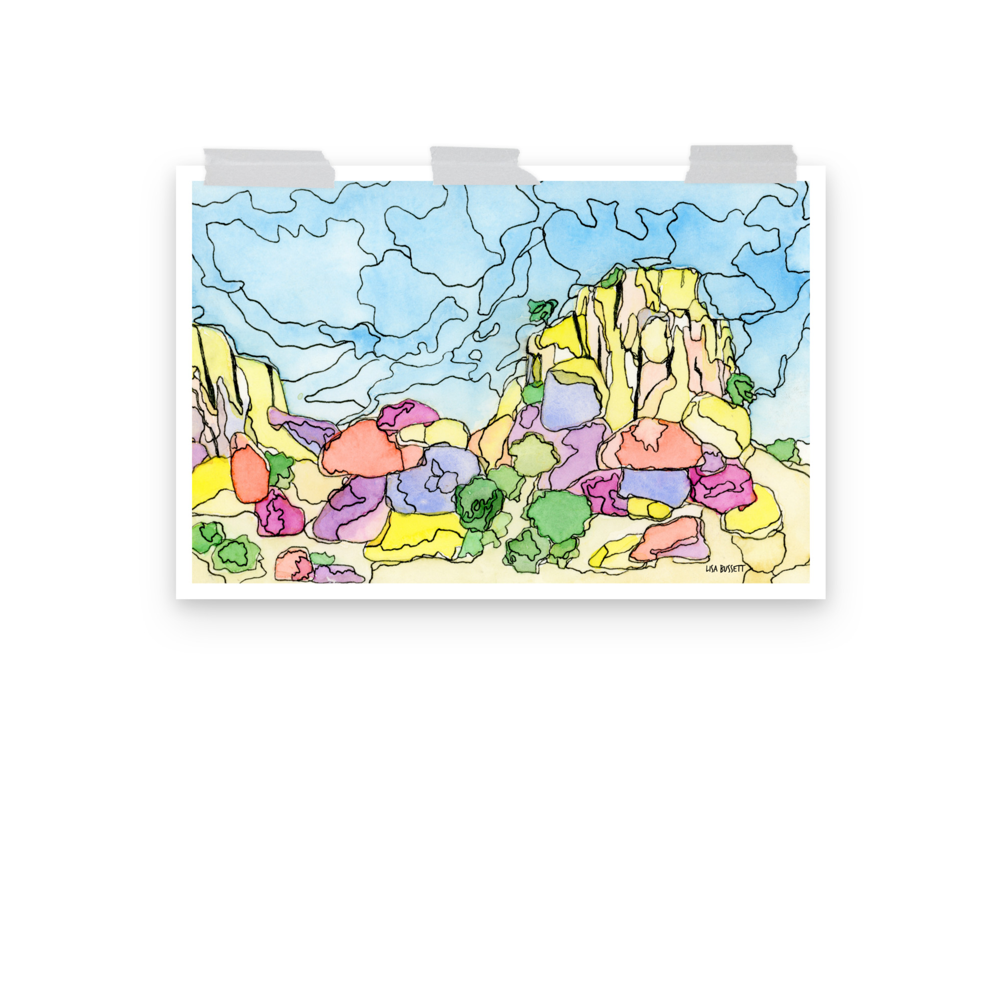 The Dragoon Mountains were the winter home of Chief Cochise and the Chiricahua Apache. This is one of my favorite areas to camp and explore the rounded boulders, narrow ravines, and rocky slopes. The mountains hold an air of mysticism and have inspired many of my paintings.