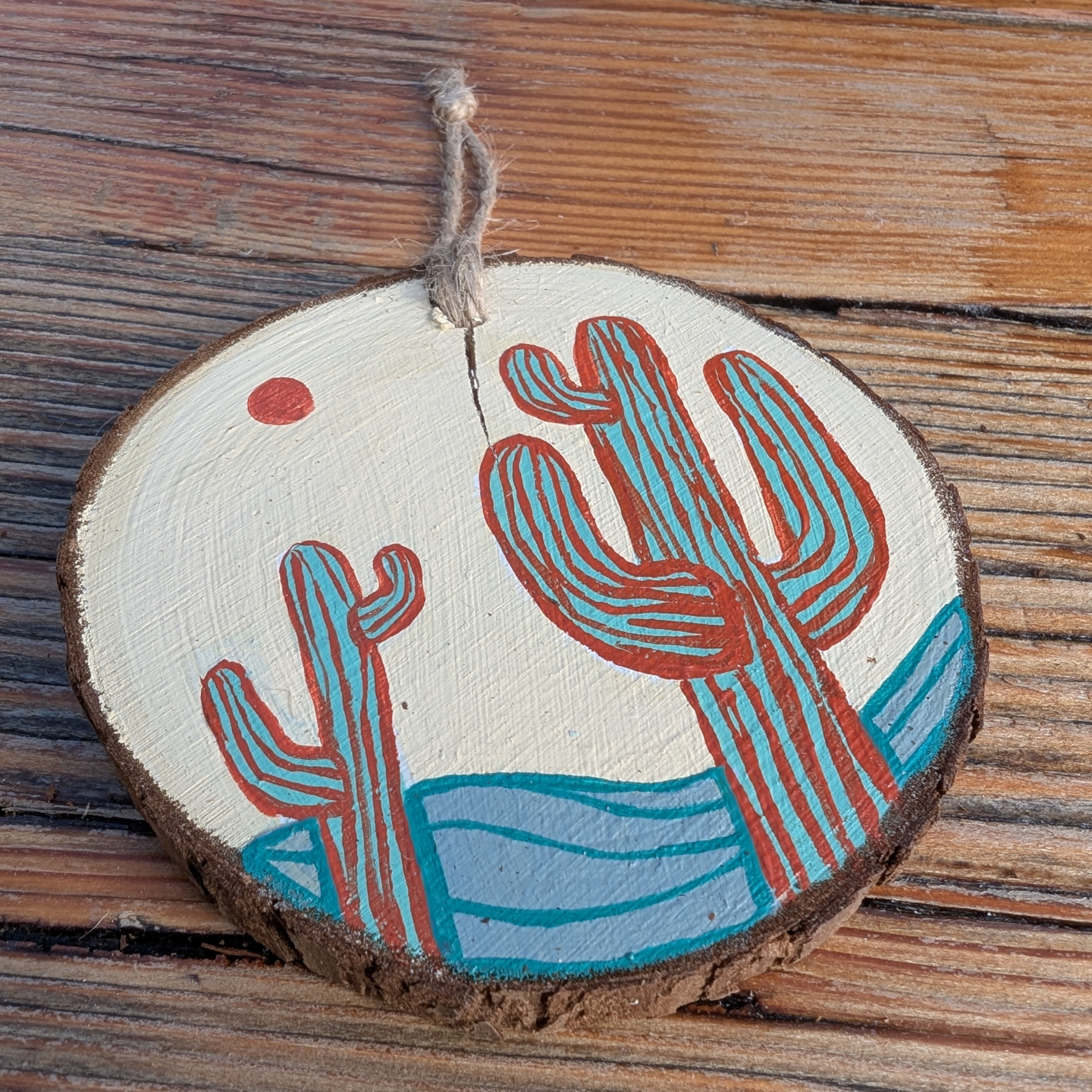 Slices are natural wood and vary in size, shape, texture, and color. Also, just as in nature, some of the wood has cracked and small bits of bark may come loose over time. This adds to the beautiful rustic individuality of each tiny painting.