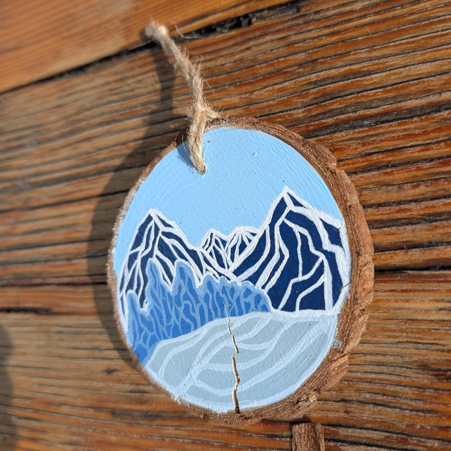 Slices are natural wood and vary in size, shape, texture, and color. Also, just as in nature, some of the wood has cracked and small bits of bark may come loose over time. This adds to the beautiful rustic individuality of each tiny painting.
