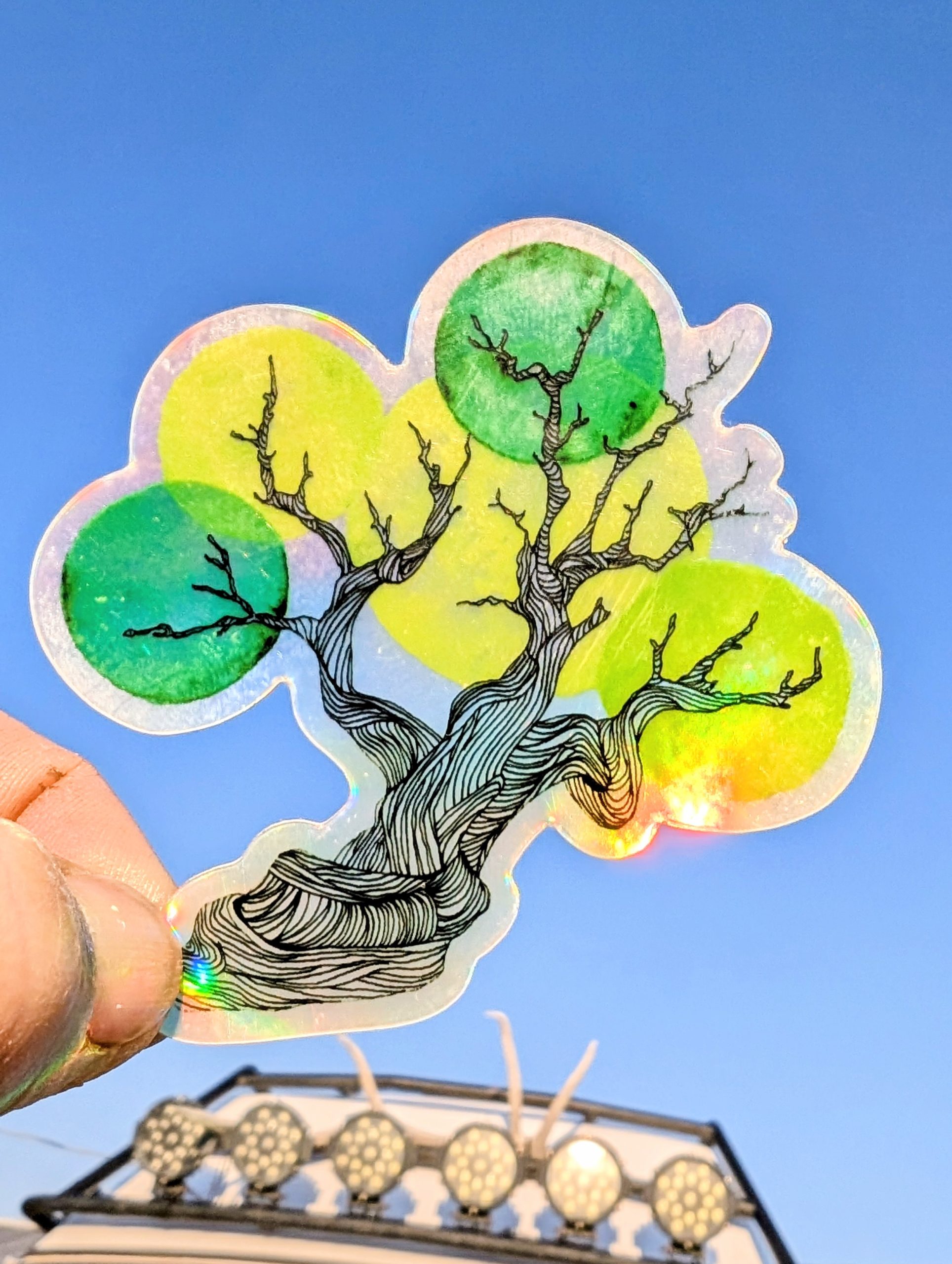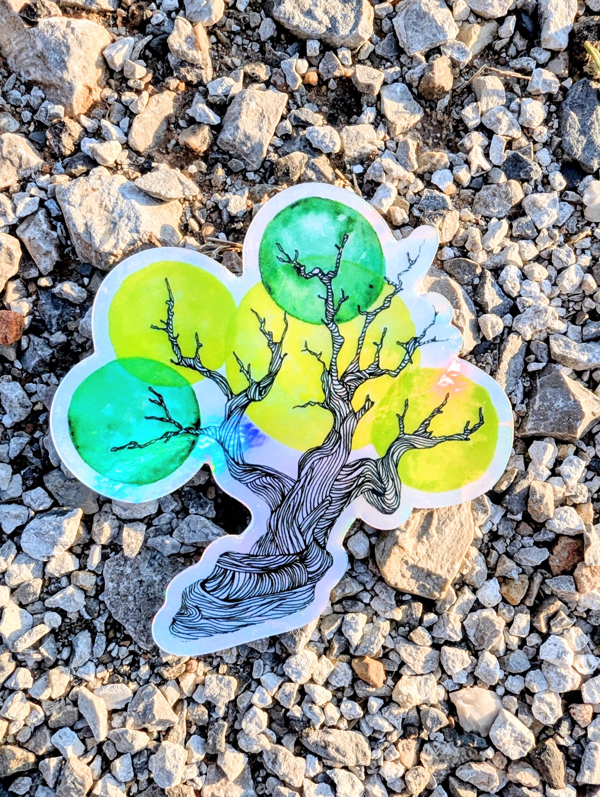 These cute little juniper tree stickers are printed on premium, holographic vinyl with a permanent adhesive and glossy finish. They’re coated with a protective laminate that makes them resistant to fading, scratching, tearing, and water. They’ll withstand pretty much anything – even the dishwasher.