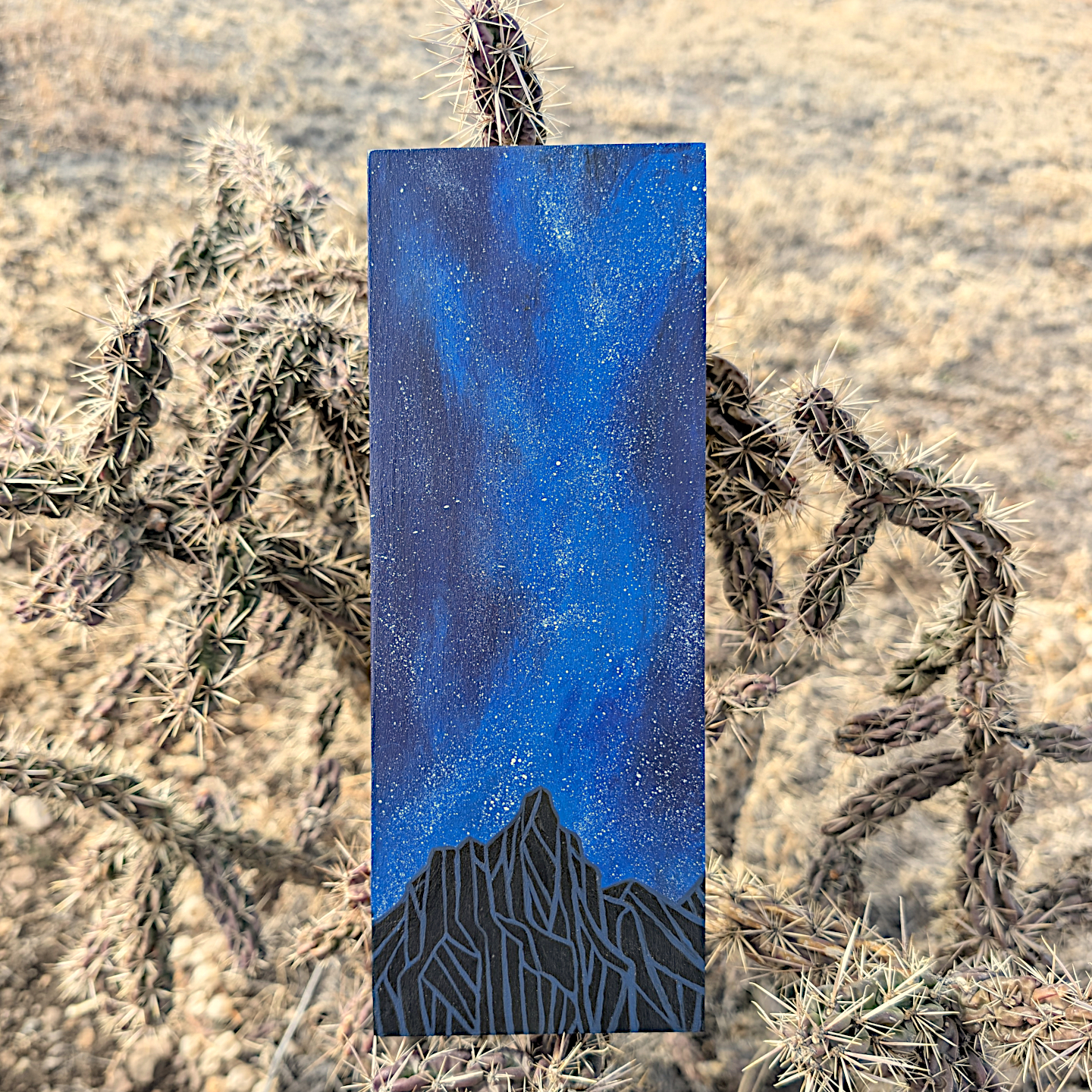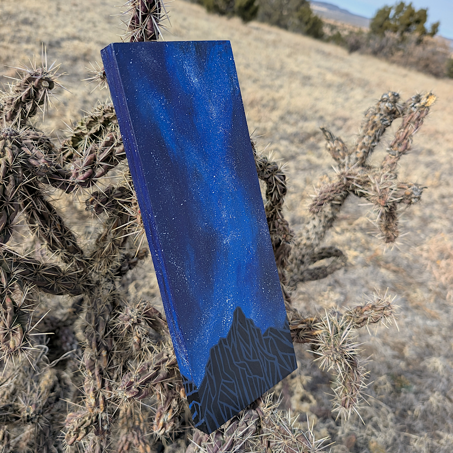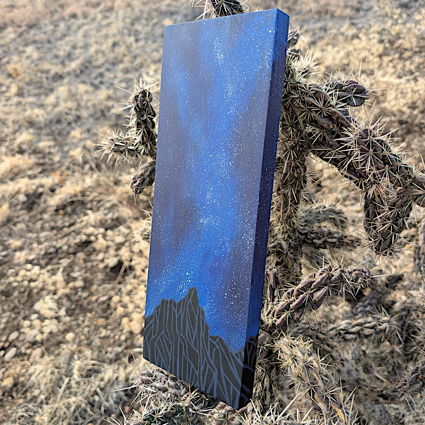 Bring the wonder and awe of the expansive night sky into your home with this original painting. Choose a star, make a wish, and let this serene scene add a bit of magic to your space. Lightweight, ready to hang.