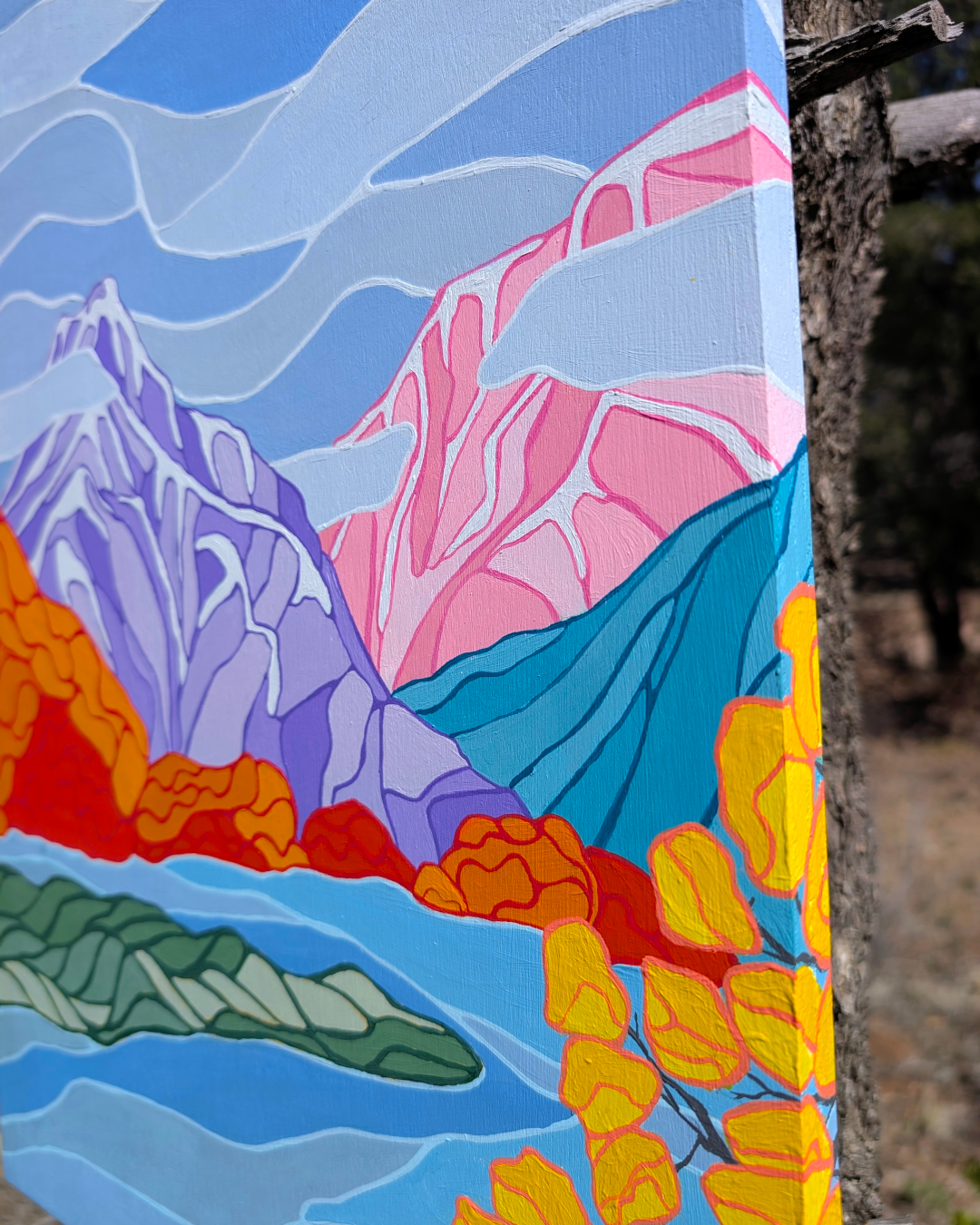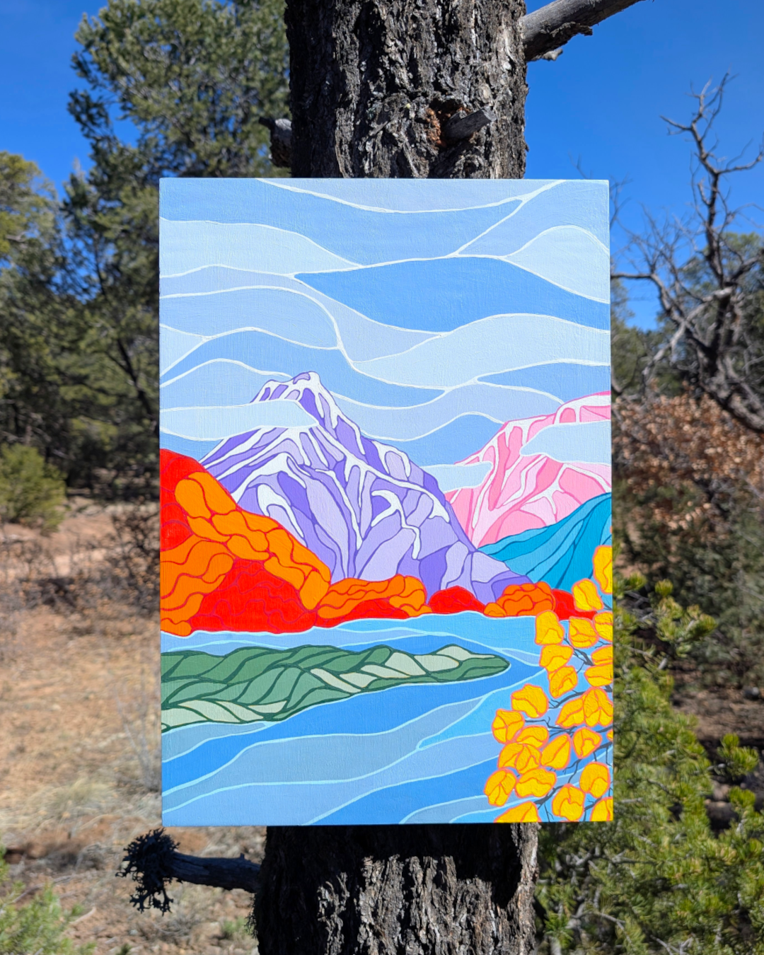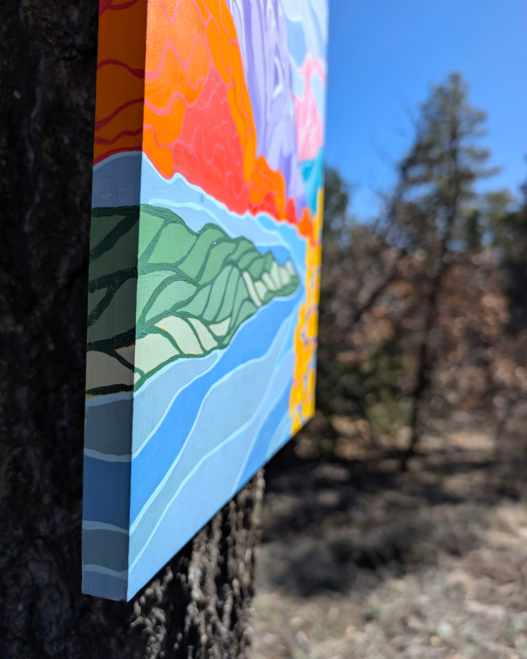 This was one of the many paintings I created from our time there, inspired by the many walks Paco and I took along the Waterfront Park Trail, a lovely trail system that winds along the Wenatchee River and through quiet riverbank forests.