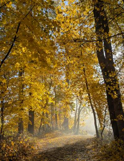 The fall foliage was absolutely incredible while we were there, and I could not get enough of it. For a trail a stone’s throw from the hustle and bustle of town, we often had it all to ourselves. The solitude was perfect, and we saw more wildlife in the park than we do in our forest campsites: deer, turkeys, geese, ducks, eagles, and signs warning of a bear that we thankfully never saw.